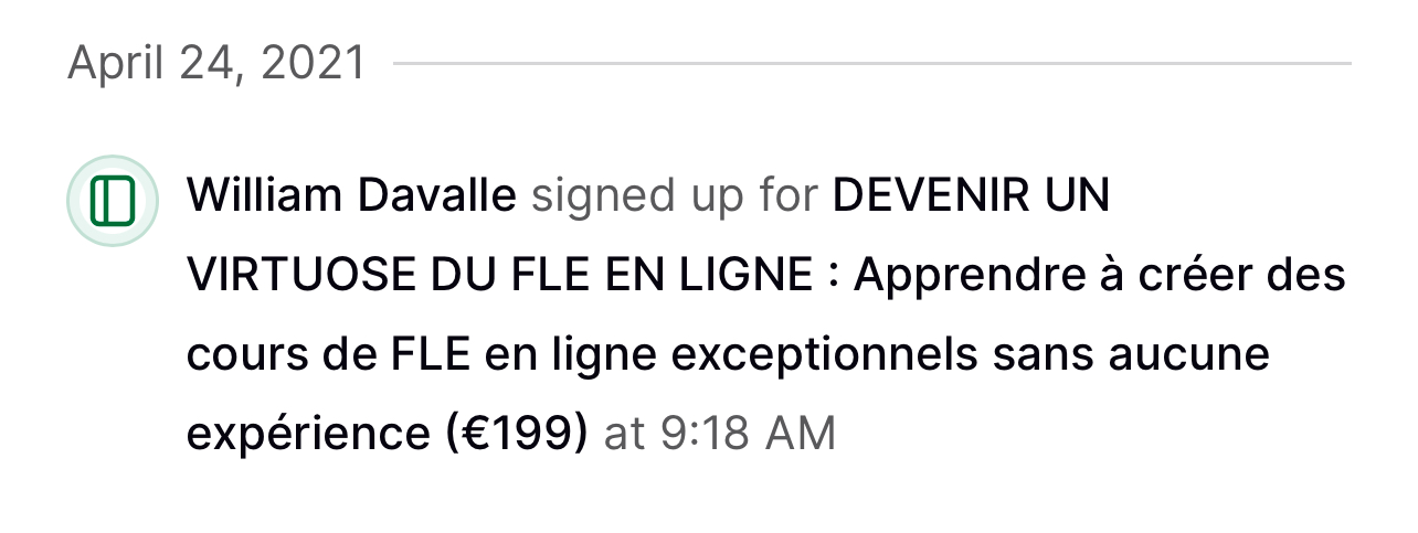 Avec un produit FLE, tout ça c'est terminé : tu auras juste à enregistrer une fois la formation, et à la vendre à tes élèves. Pour un seul et unique effort, cela peut te rapporter de l'argent sur plusieurs années.
